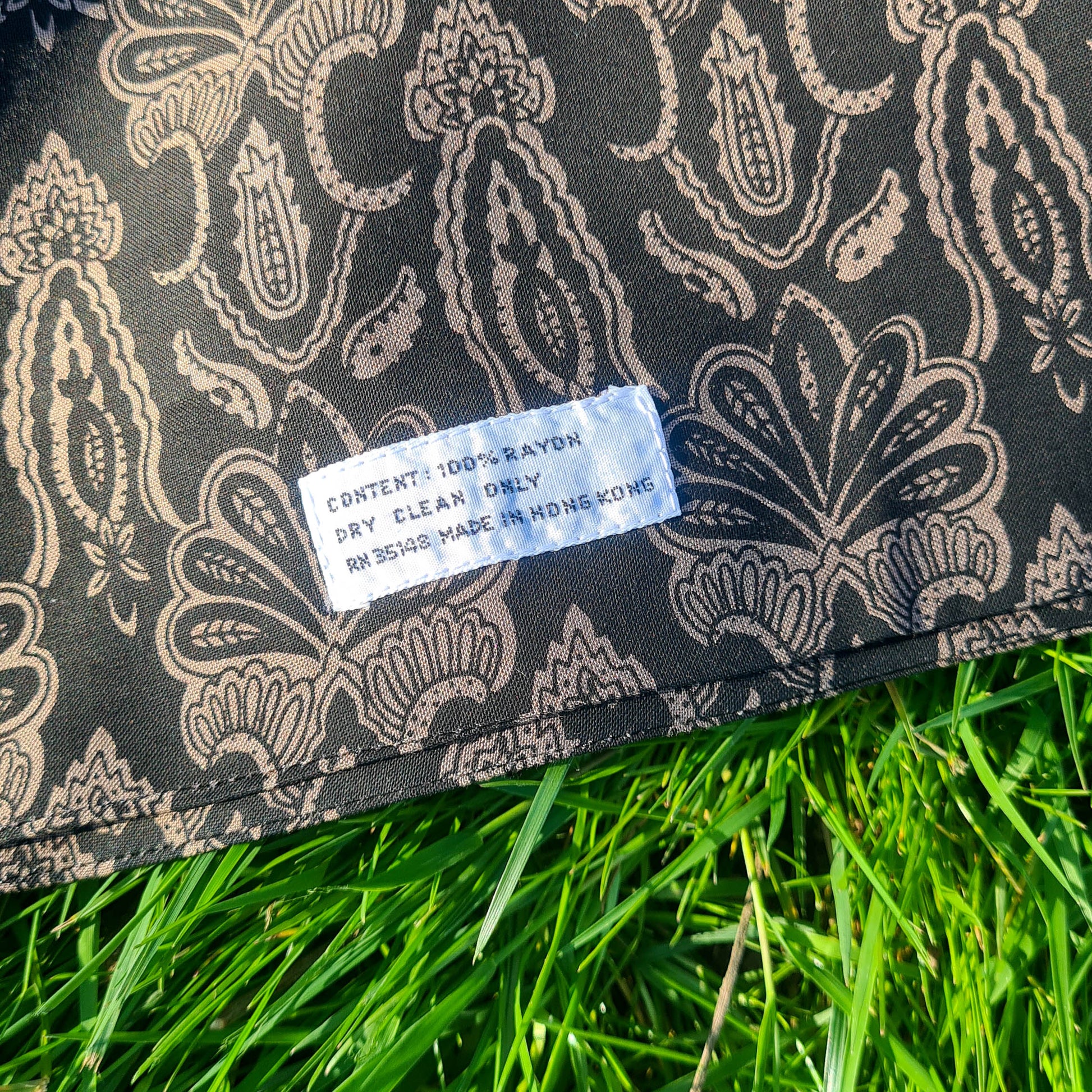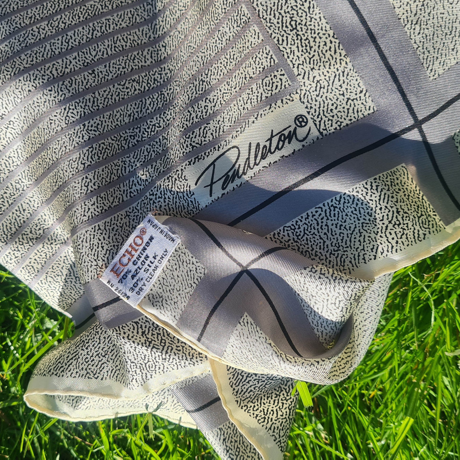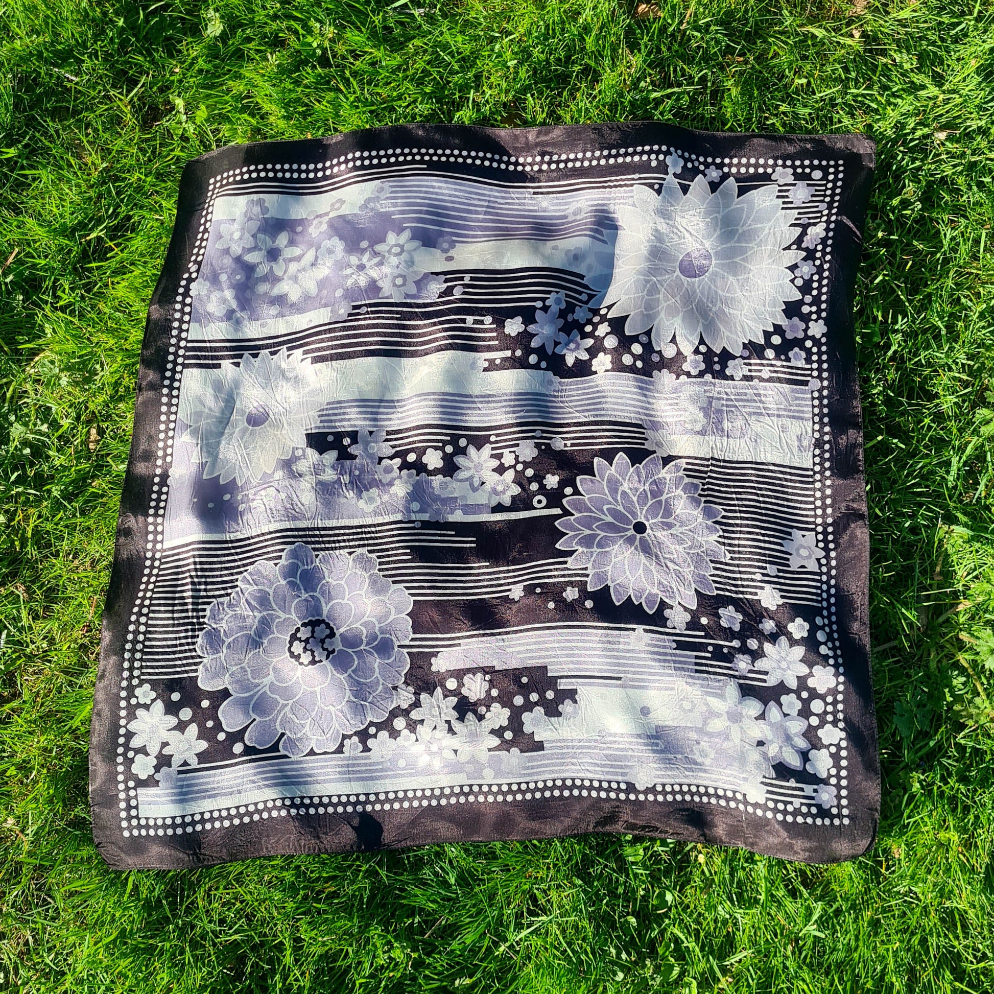 These scarves vary in size and fiber content, but all are in good condition. Some are silk blends, and others are synthetic.